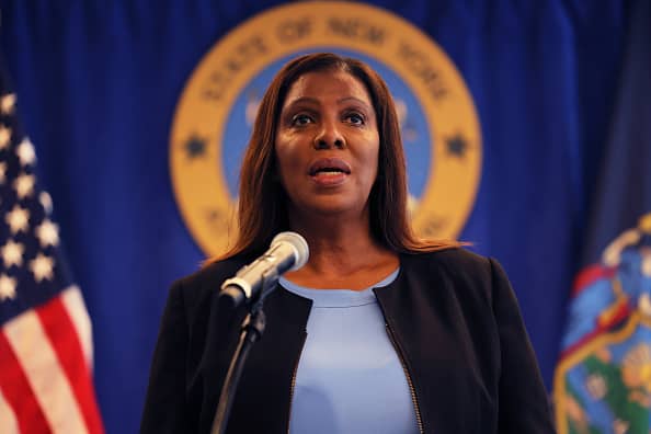 New York Attorney General Letitia James speaks during a press conference at the office of the Attorney General on July 13, 2022 in New York City....